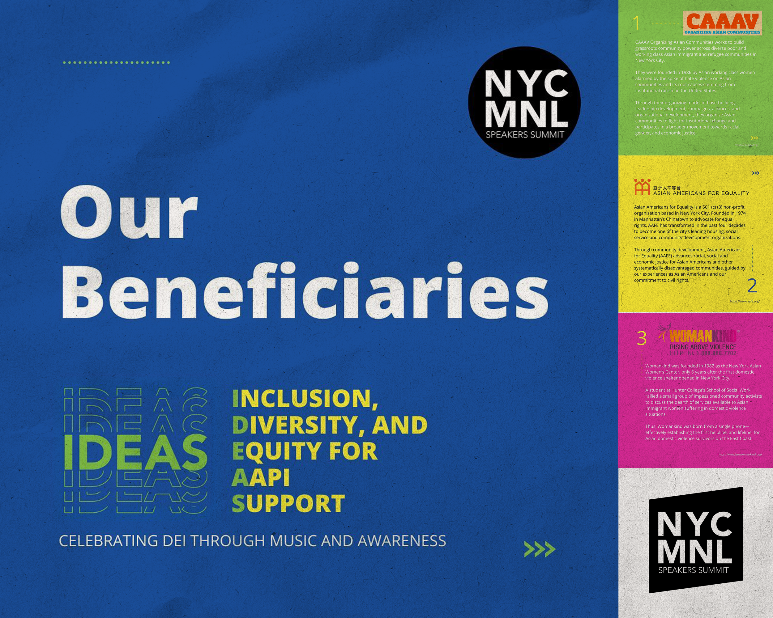 NYC MNL Speaker Summit is a virtual event that brings together thought leaders, industry experts, and keynote speakers to educate, inspire, and connect people around the world. Founded by two immigrants from the Philippines who have built their lives in the USA, the summit carries a deep commitment to uplifting the AAPI community in New York. The client requested branding that clearly and simply communicates its message while feeling fresh and impactful.